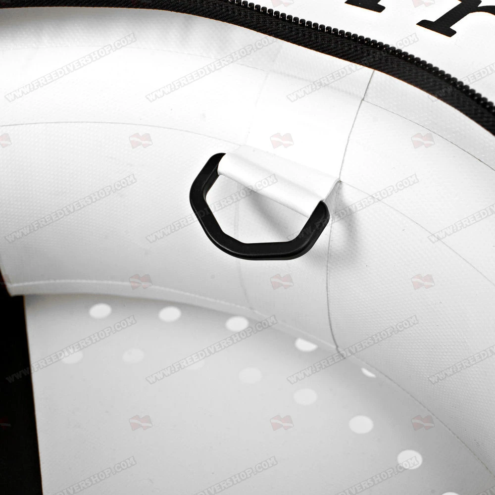 Fitted with a stainless steel D ring and 16 soft ergonomic grip handles, both on the top and bottom part of the buoy, allowing gripping the buoy comfortably in virtually any diving conditions and breathup style.
