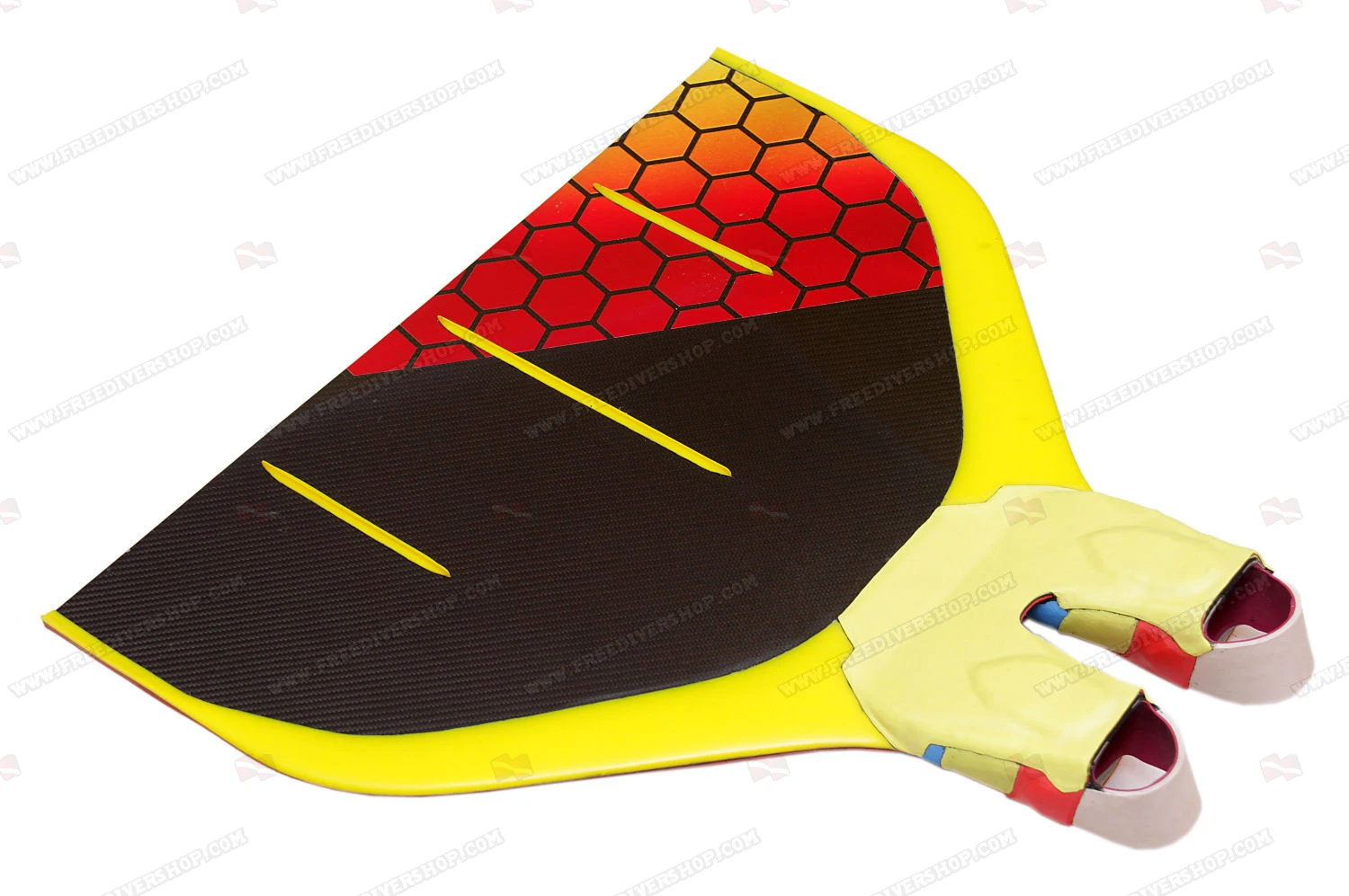 The Bondarev monofin sports a pair of one-of-a-kind hand made rubber cast foot pockets which are made to match with your specifications for absolute fit and comfort.
