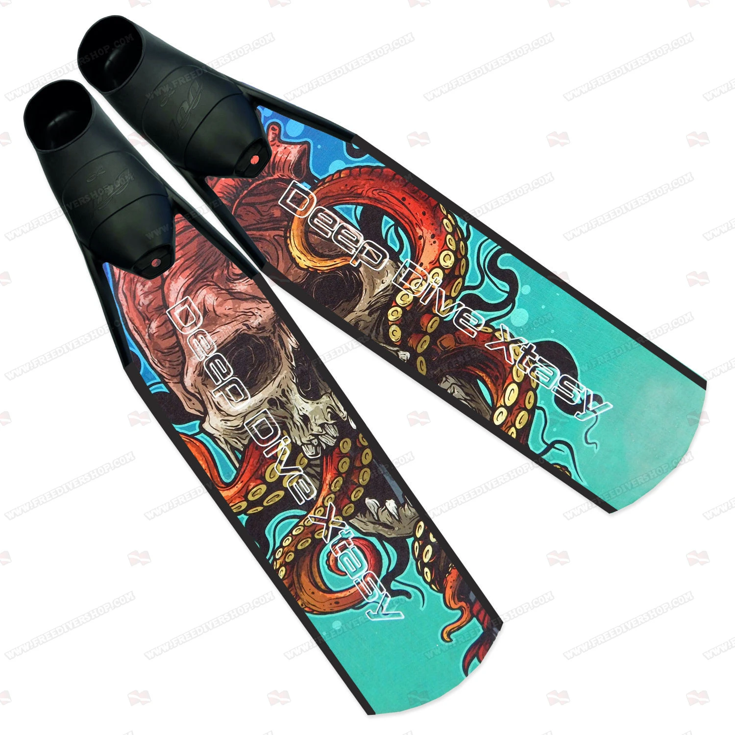 High quality Performance carbon freediving and spearfishing fins from Deep Dive Xtasy with Skull design.