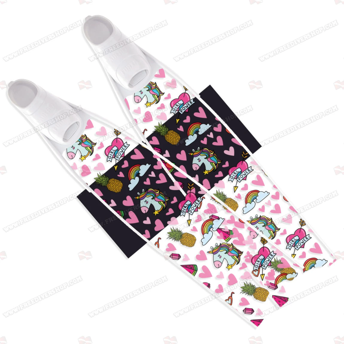 High quality semitranslucent limited edition Neon Girl Power freediving and spearfishing fins, hand made fiberglass blades, processed under vacuum in molds.