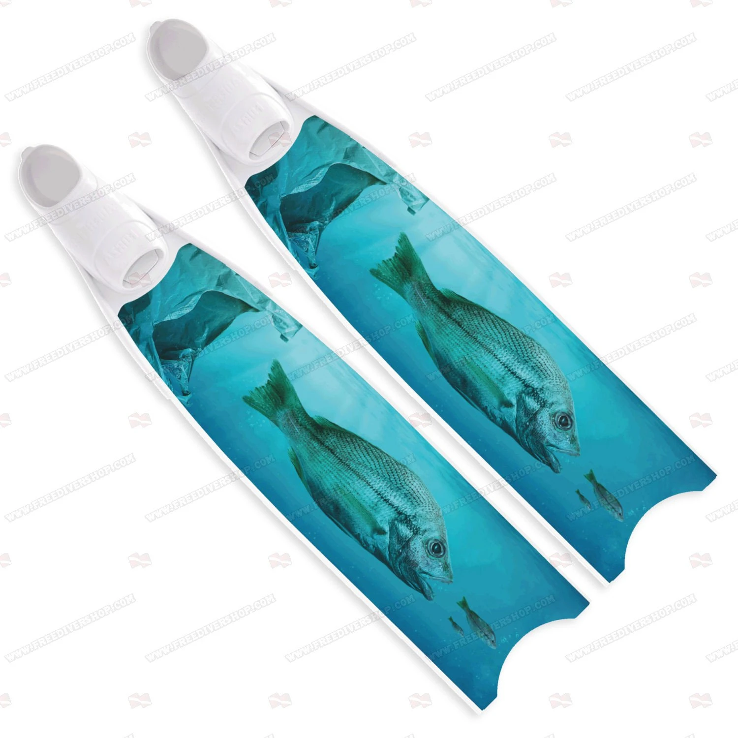 High quality limited edition freediving and spearfishing fins with Plasticide design, hand made blades from 100% carbon / fiberglass, processed under vacuum in molds.