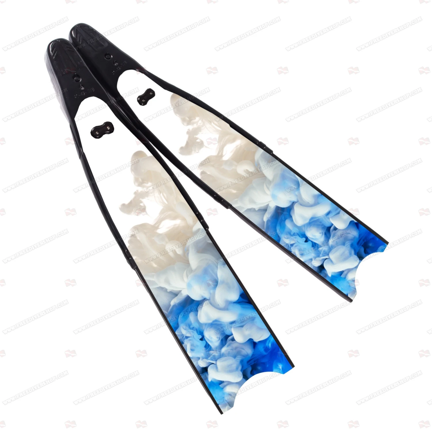 High quality limited edition freediving and spearfishing fins with Water Mist design, hand made blades from 100% carbon / fiberglass, processed under vacuum in molds.