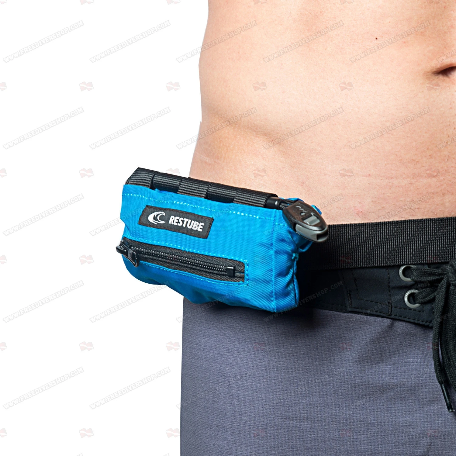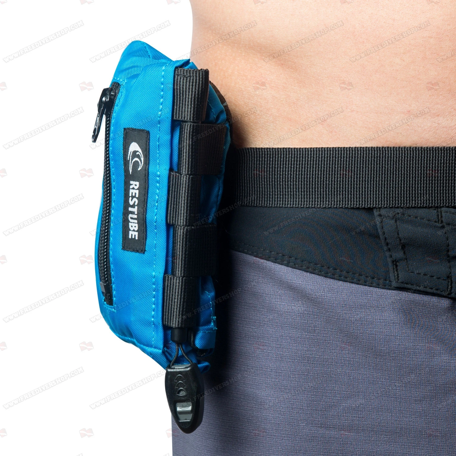 The Restube is extremely compact, it is stowed away in its robust case until use – the case can be carried horizontally or vertically around the hip using the supplied interchangeable belt or attached directly to your harness / trapeze / gear and features a key compartment.
