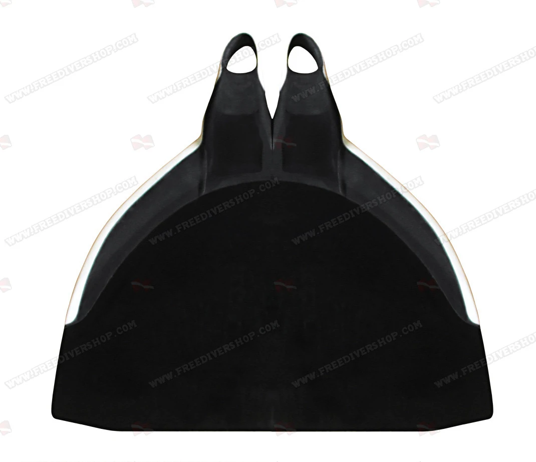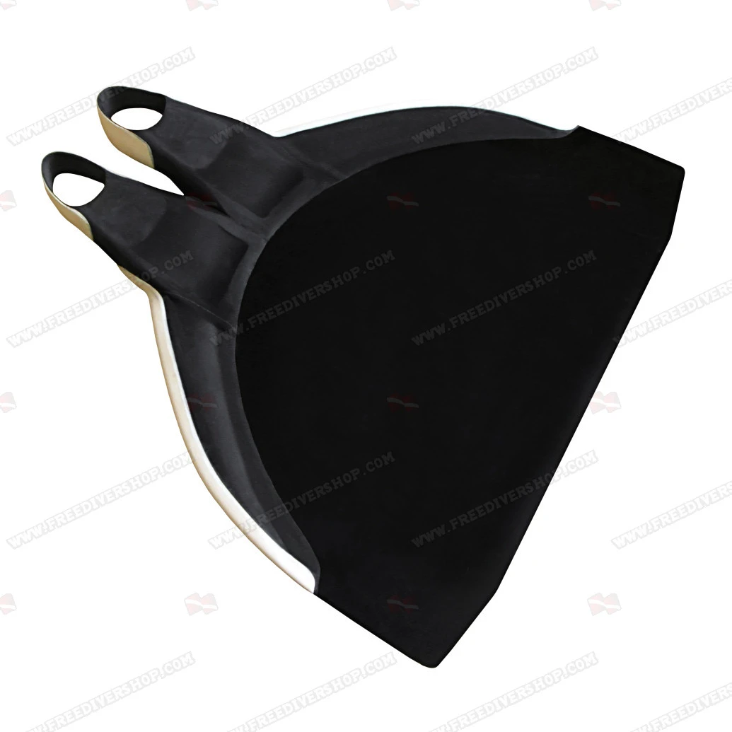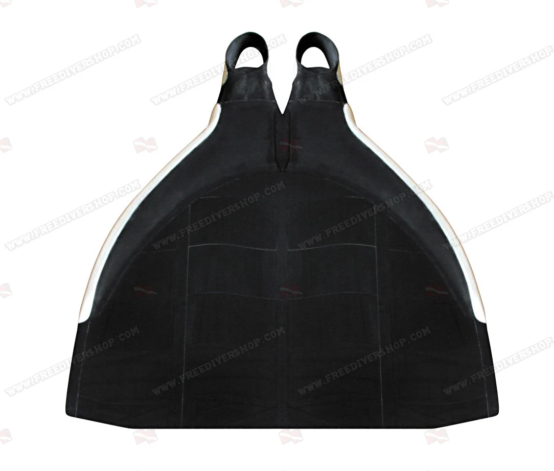The base of the monofin blade is neoprene coated to form a wing which helps complete the divers motion and further improves energy transmission.